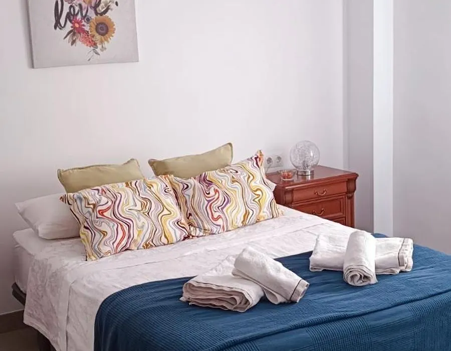 1-slaapkamer Confortable Y Luminoso Piso 5 Camas, Parking Gratis omvat een balkon en een zitruimte compleet met een strijkijzer en strijkplank, airconditioning, evenals een TV en een flatscreen TV met satellietzenders. De accommodatie is ook ingericht met een bank en een bureau. Dit appartement heeft 3 slaapkamers. Deze accommodatie heeft 1 badkamer, voorzien van een bidet en een badkuip, samen met een haardroger en badlakens.