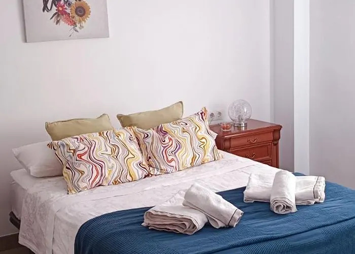 Confortable Y Luminoso Piso 5 Camas, Parking Gratis van 14 m^2 is gelegen op 5 minuten met de auto weg van de Kathedraal van Malaga en op 5 minuten met de auto vanaf het Geboortehuis Picasso. Het appartement ligt in de wijk Ciudad Jardin van Málaga en heeft een terras met uitzicht op de berg.